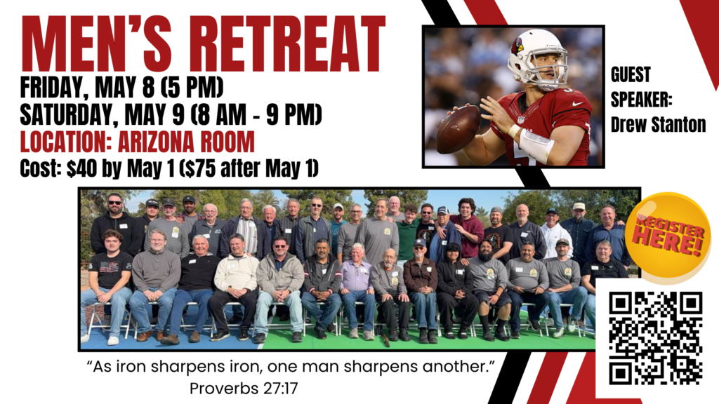 The next Men’s Ministry Retreat is set for Friday, May 8 – Saturday, May 9 on campus