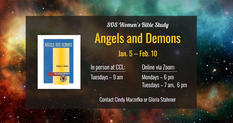 Women SOS Women’s Bible Study: Angels and Demons At CCL: Tuesdays at 9 am in the Canyon Room Online via Zoom: Mondays Read More »
