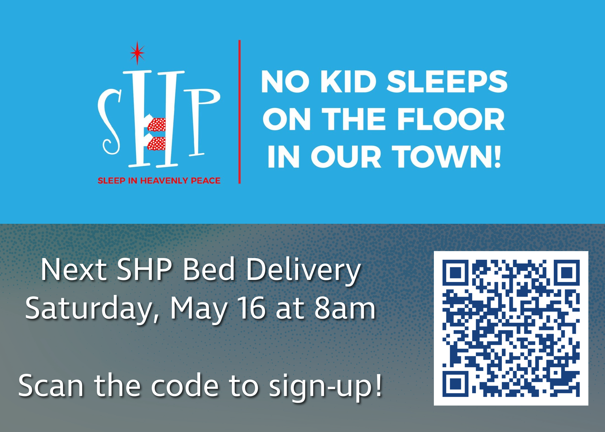 The next SHP Bed Delivery is set for Saturday, May 16 at 8am. Click